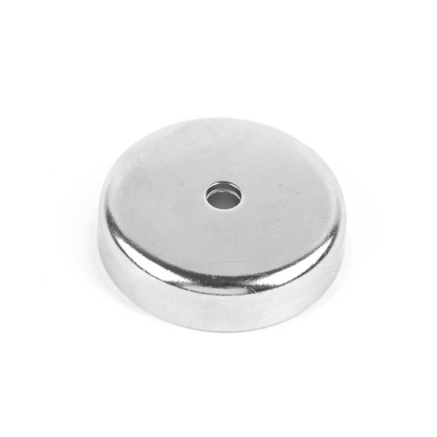 Сплав редкоземельных элементов (неодим, бор и железа) помещен в металлический корпус имеет большую магнитную силу, благодаря которой может содержать до 162 кг металлической продукции. За счет отверстия диаметром 75 мм можно закрепить на поверхности вертикально или горизонтально. Особенность данного изделия в том, что быстро крепится. Достаточно просто прикрутить магнит к устойчивой основы, и нельзя повесить полку, различные приборы и многое другое.
