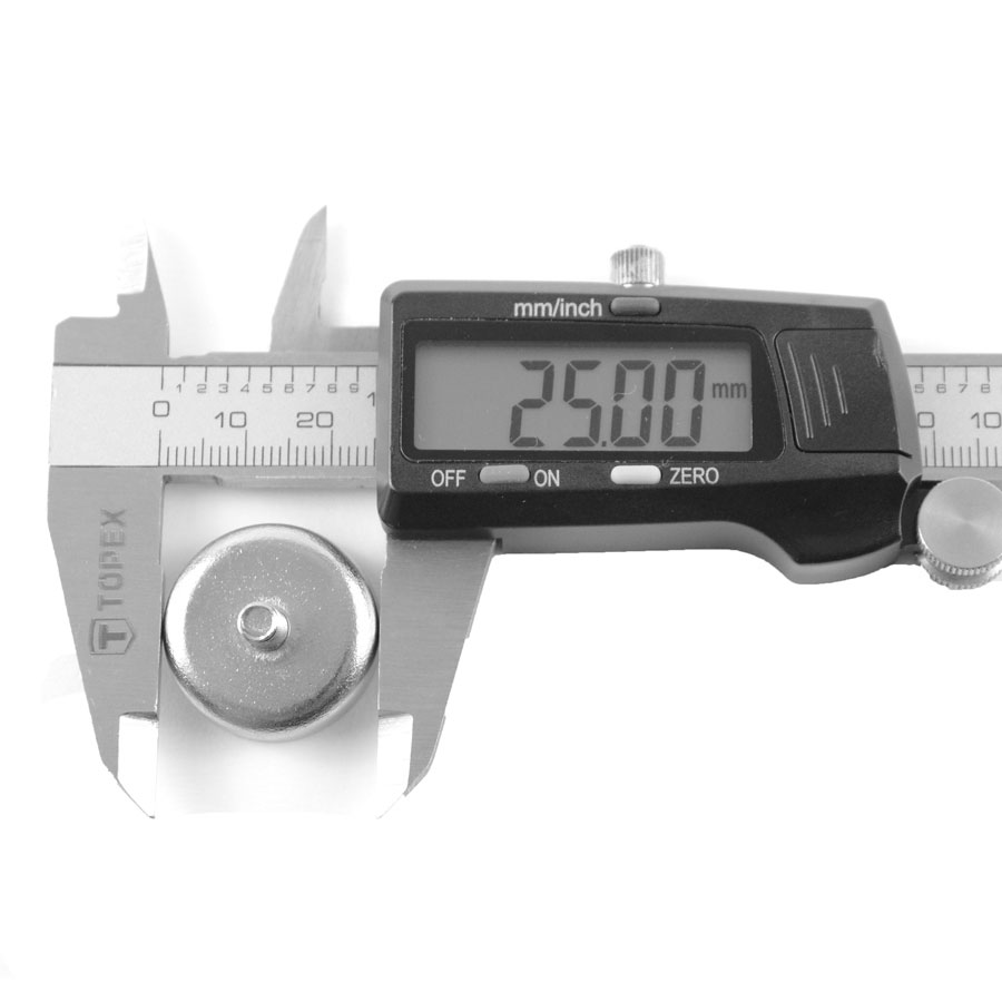 Неодимовый магнит это сплав неодима, бора и железа. В данном виде магнит вклеен в стальной корпус. Это ограничивает силу магнита с одной стороны, но с противоположной он мощнее. С25 имеет силу удержания 25кг. Если вы хотите соединить два магнита С 25 нужно взять с различными магнитными полями. Если одинаковые то они будут магнититься друг к другу со смещением.